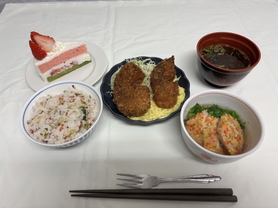 - ひまわりの風は毎月第3水曜日が「お楽しみメニュー」の日です。<2月のお楽しみメニュー>「手仕込みアジフライ定食」・アジフライ~山クラゲのタルタルソース~・海老しんじょうの桜あんかけ・蕪の葉飯・アオサの味噌汁刻み食ムース食海老しんじょうには「ぶぶあられ」がま...