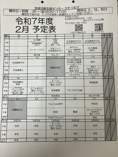 - 地域活動支援センターかたつむり🐌2月予定表👹