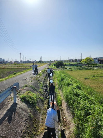 - これって、とっても大切な作業それは、水路の掃除草や堆積物が水路をふさがないように、長年、この地を潤す大切な水の入口と出口を守ってきた地域に感謝しながら、農業スイッチオン!#ひまわり福祉会くすの木 #クスノキノタンボ #水路清掃 #農業スイッチオン #感謝